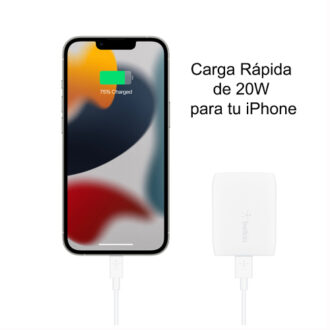 Este cargador de pared compacto de 20 vatios con USB-Power Delivery significa una carga rápida para sus dispositivos habilitados para USB-PD. Admite carga rápida para iPhone para cargar iPhone 8 o posterior de cero a 50 % en 30 minutos con el cable incluido y otros teléfonos inteligentes/tabletas a velocidades óptimas. Diseñado a propósito para ser fácil de viajar, este cargador de bolsillo se adapta fácilmente a cualquier entorno en el hogar o cuando está fuera de casa. Una garantía de equipo conectado protege sus dispositivos para mayor tranquilidad.